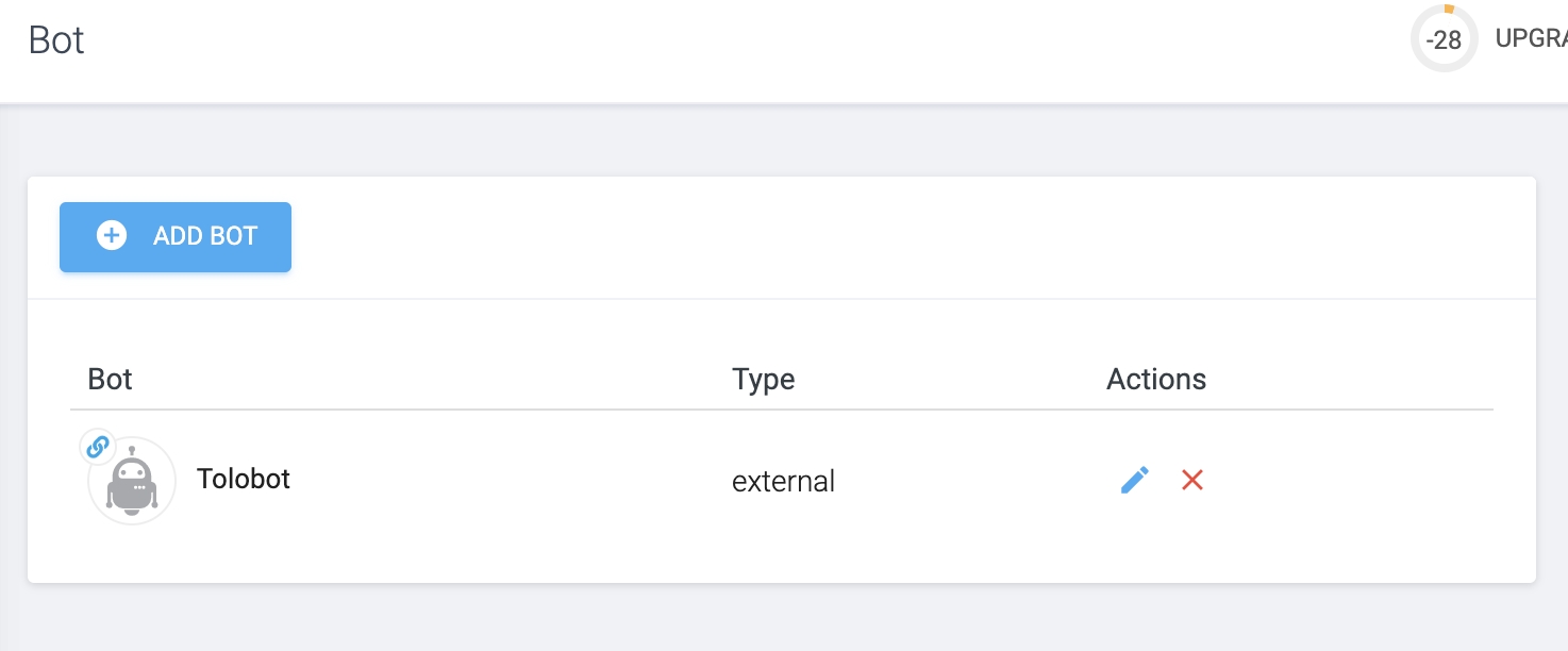 Click the CREATE BOT button. Tolobot is now available in our Bots summary list: