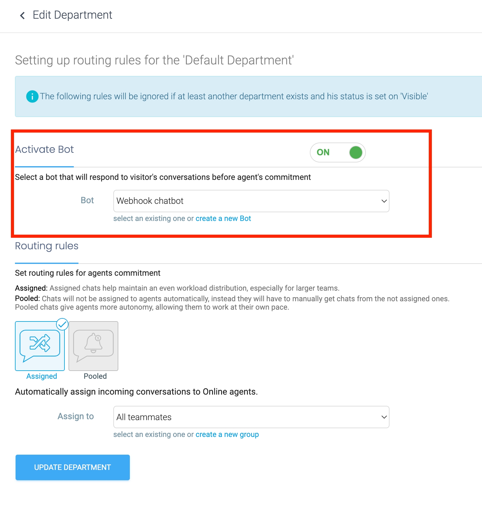 Import the chatbot with the "Import Chatbot" button
