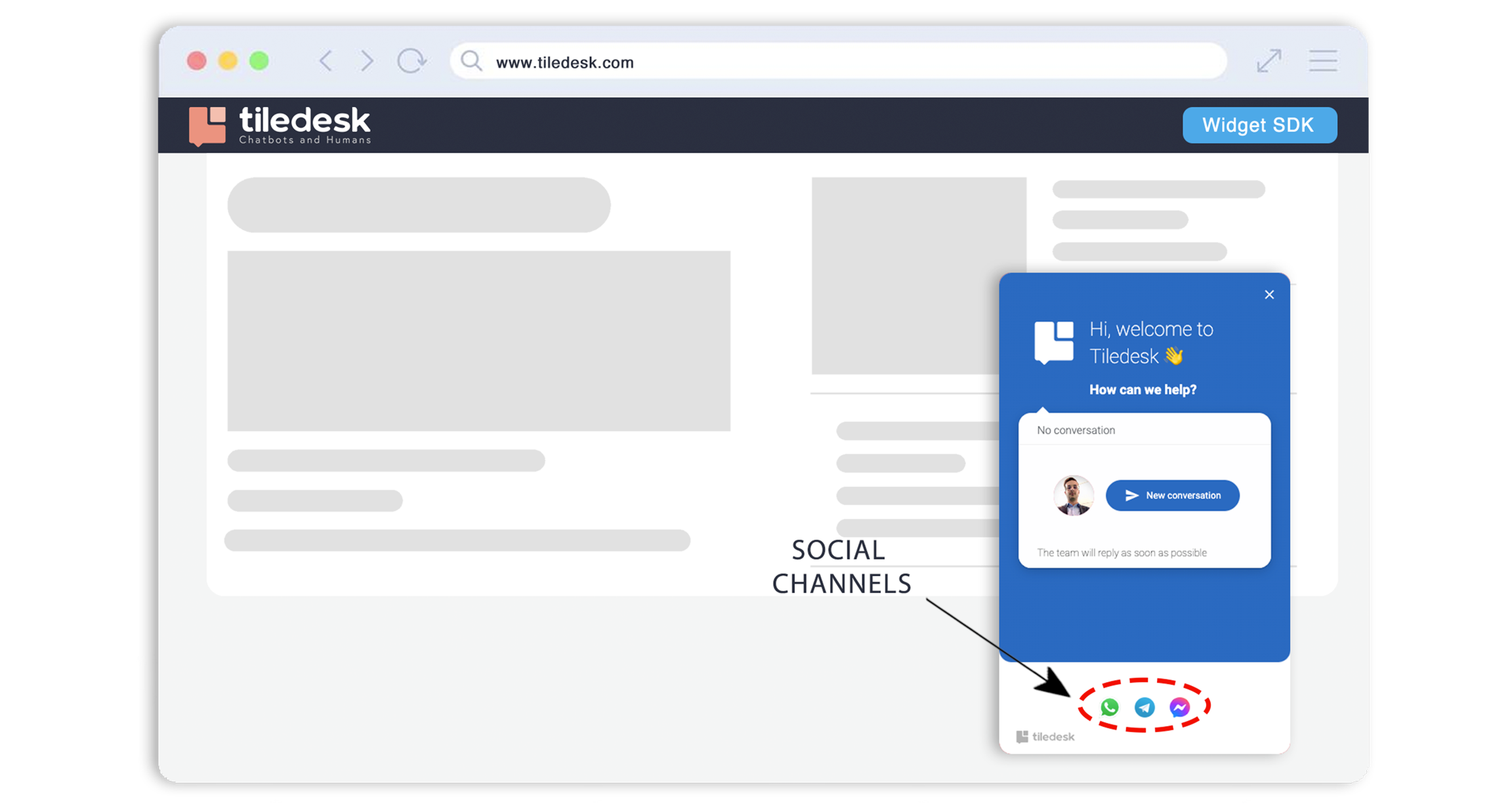 You can also pass the above configurations as a Url parameter with the tiledesk_ prefix. For example: