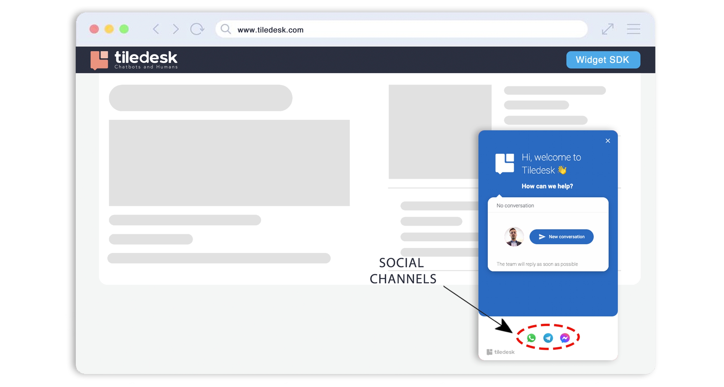 You can also pass the above configurations as a Url parameter with the tiledesk_ prefix. For example: