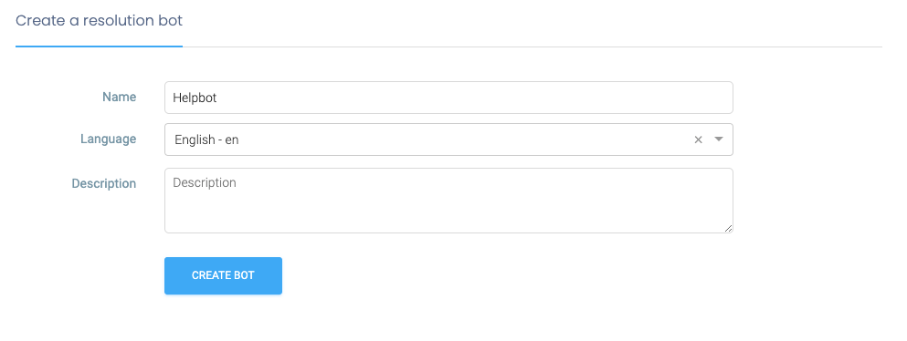 Set "Helpbot" (or whatever you prefer) as the chatbot name and leave the other settings with their default value. Press "CREATE BOT":